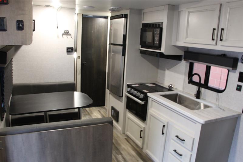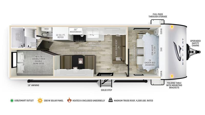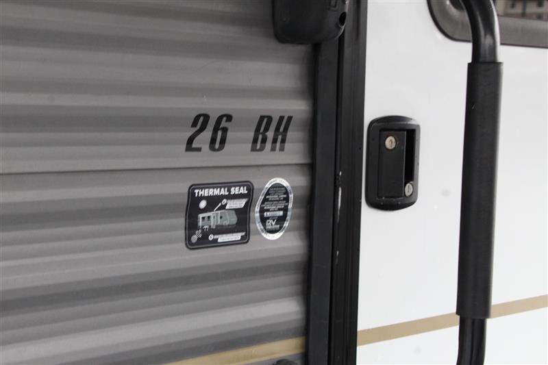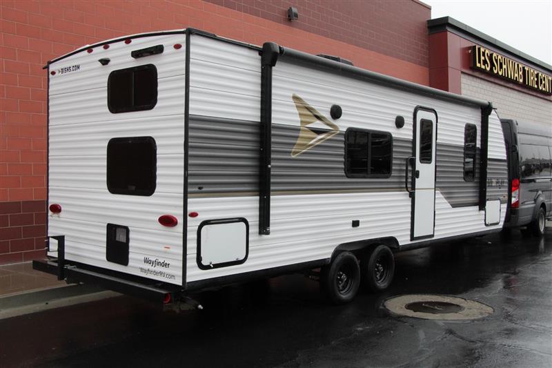 2023 HIGHLAND GO PLAY 26BH The Wayfinder Go Play 26BH is family bunkhouse camper meant to include all the features families are looking for when buying a new high quality but lower price range travel trailer. It's a fantastic, straightforward bunkhouse camper. You will find lots of simple, thoughtful features, like a front private bedroom, extended ceiling height, and no-carpet ventless floors. The 2023 Highland Ridge Go Play 26BH (often branded as Wayfinder RV) is a lightweight trailer measuring approx. 29' 6" in length with a dry weight around 4,740 lbs and a 6,500 lbs GVWR. Easily towed with a half ton full size pickup. It typically sleeps 8-10 people, featuring double-over-double bunks, a queen bed, and a convertible dinette/sofa, Rear corner bathroom with a tub/shower combo.