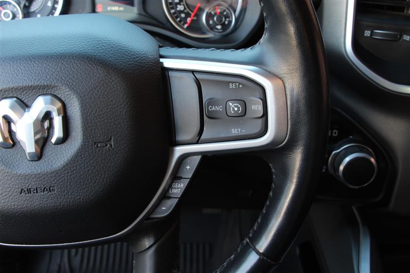 Inside, the RAM 1500 BIG HORN stands out for its comfort and technology. Drivers love the intuitive touchscreen display, smartphone integration, and thoughtful cabin design that prioritizes both convenience and luxury. Whether you’re running errands around town or hauling gear to the canyon, you’ll appreciate its quiet interior and excellent visibility.